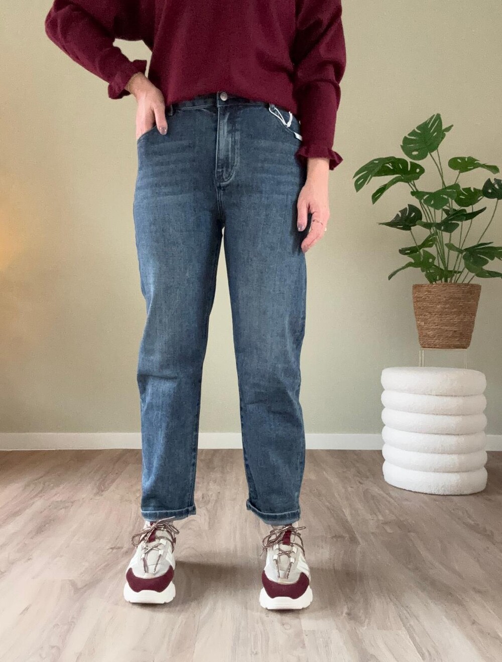 Een ander model jeans dan je van ons gewend bent, maar hoe leuk is deze baggy jeans, oftewel: balloon-fit? Gemaakt van een zachte en soepele stof zoals altijd, high-waist pasvorm en heel veel stretch. Tip van ons: sla de broekspijpen 1 keer om voor een nog leuker effect :).