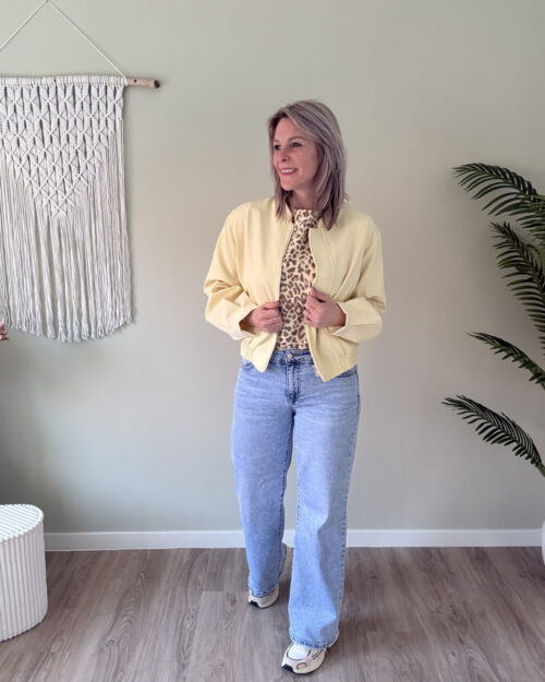 €49,95Een heerlijk basic bomber-jack in de trendkleur van het voorjaar! De bomber valt iets oversized, maar dit maakt hem extra leuk. Draag hem op je jeans of stijl hem chique op een pantalon. Verkrijgbaar in de maten SM en ML.