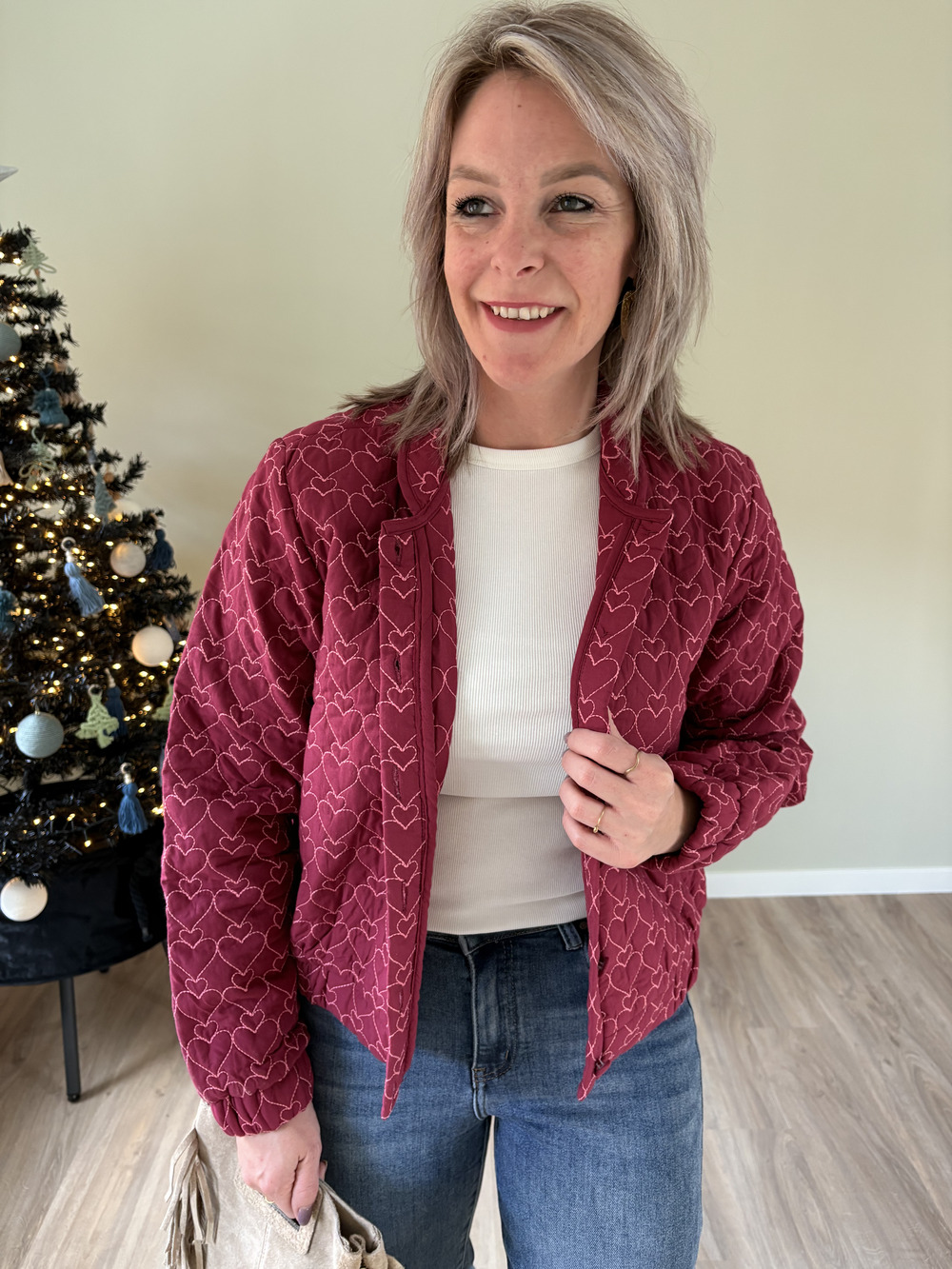 €49,95Mooie en stijlvolle bomber in de trendkleur bordeaux! De komende tijd prima te dragen als tussenjas. De bomber is voorzien van steekzakken en sluit met knopen. De bomber is iets korter waardoor hij net even die klassieke en chique touch heeft.
