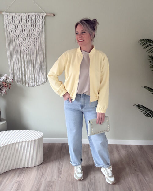 €39,95Weer een heerlijke basic bomber in de trendkleur van het voorjaar! Deze bomber valt niet oversized en heeft een ‘normale’ pasvorm. Voorzien van een opstaand kraagje en dit maakt hem extra leuk. Draag hem op je jeans of stijl hem chique op een pantalon. Deze variant is eerder te gebruiken als vest dan jas.
