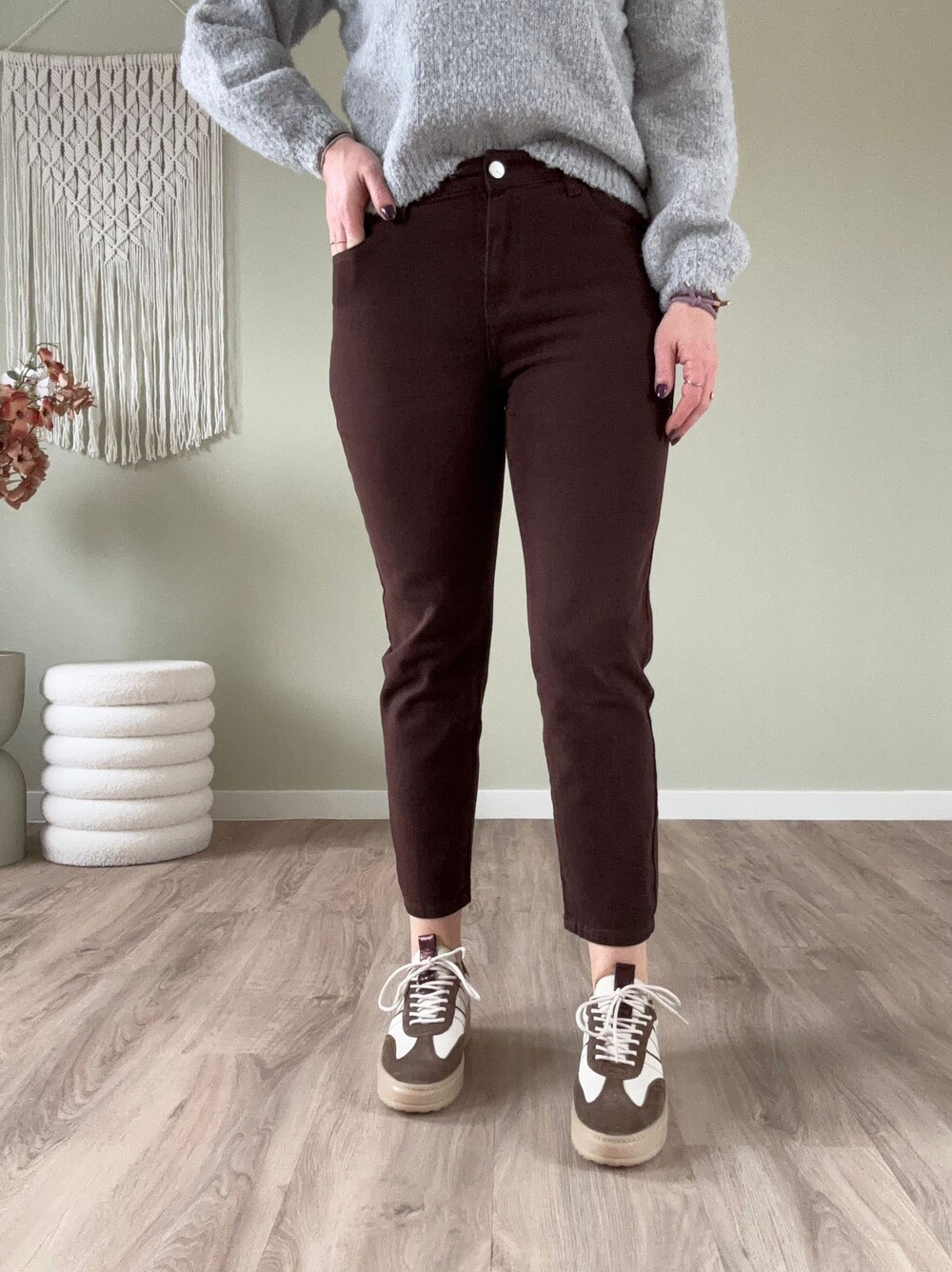 De MOM-jeans met heel veel stretch in de trendkleur choco! De jeans is gemaakt van een soepele en zachte stof waardoor hij veel stretch bevat. Door de hoeveelheid stretch raden wij aan om een maatje kleiner te bestellen dan normaal.