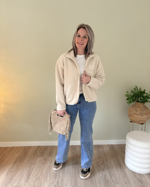 €44,95Heerlijke tussenjas/vest gemaakt van teddy-stof. De jas is midi qua lengte, sluit met een rits en is voorzien van steekzakken. De jas is gevoerd (fleece) waardoor hij lekker warm is, heerlijk!