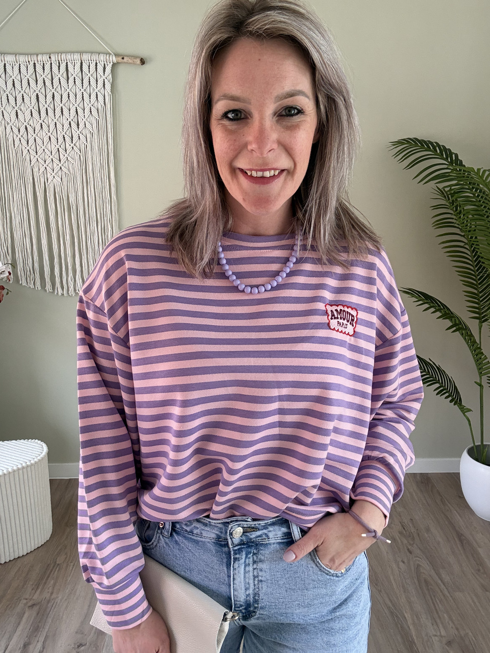 Beoordeel “Gestreepte sweater Amour paars” als eerste