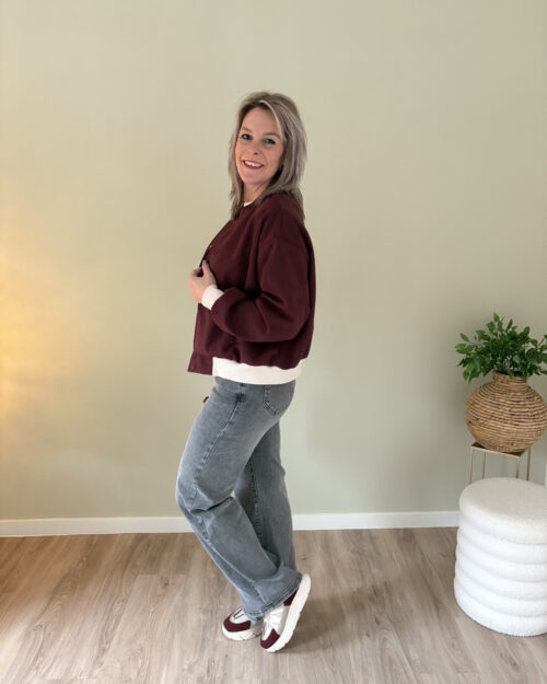 €49,95Mooie en stijlvolle bomber in de trendkleur bordeaux! De komende tijd prima te dragen als tussenjas. De bomber is voorzien van steekzakken en sluit met knopen. De bomber is iets korter waardoor hij net even die klassieke en chique touch heeft.