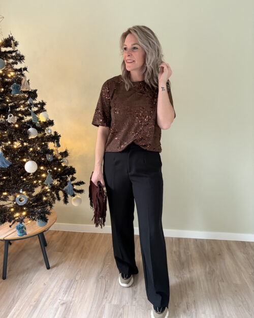 €29,95Oorspronkelijke prijs was: €29,95.€15,00Huidige prijs is: €15,00.Net even een andere variant op de wide-leg pantalons en het leukste: deze kan gecombineerd worden met een bijpassende blazer! Gemaakt van een soepele stof waardoor je hem makkelijk aantrekt en voorzien van elastische band. Draag hem chique met een blouse of lekker casual met een shirt of… de bijpassende blazer.