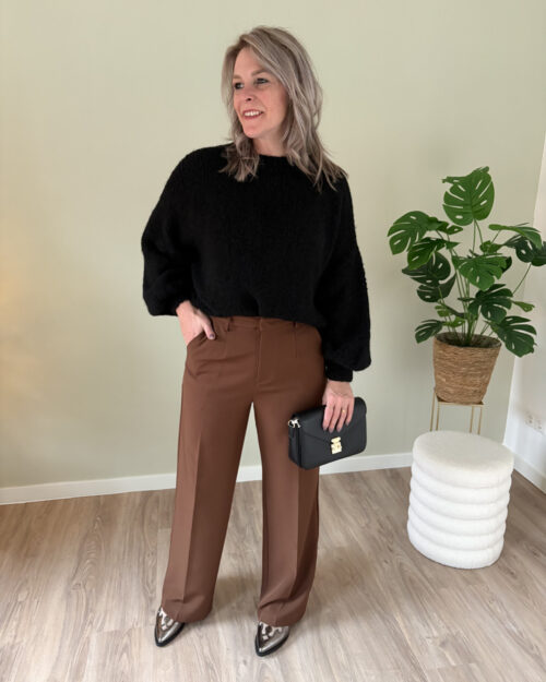 €34,95Ook komend seizoen blijven de wide-leg pantalons een trend! Gemaakt van een soepele stof waardoor je hem makkelijk aantrekt en het leukste: hij zit heerlijk! Draag hem chique met een blouse of lekker casual met een shirt. De broek is voorzien van rits en knoopsluiting, steekzakken en optische zakken aan de achterkant.