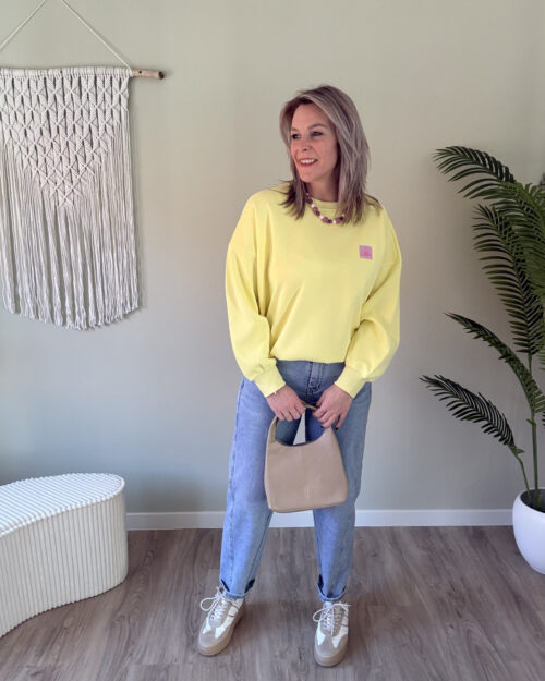 €44,95Comfortabele sweater met oversized pasvorm en lookje. Heerlijk om mee op pad te gaan of lekker thuis mee op de bank te hangen. Deze sweater is voorzien van zachte fleece-voering aan de binnenzijde.