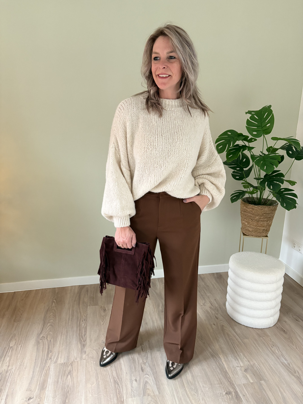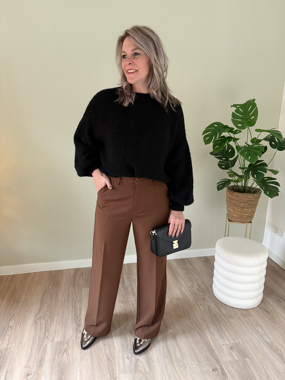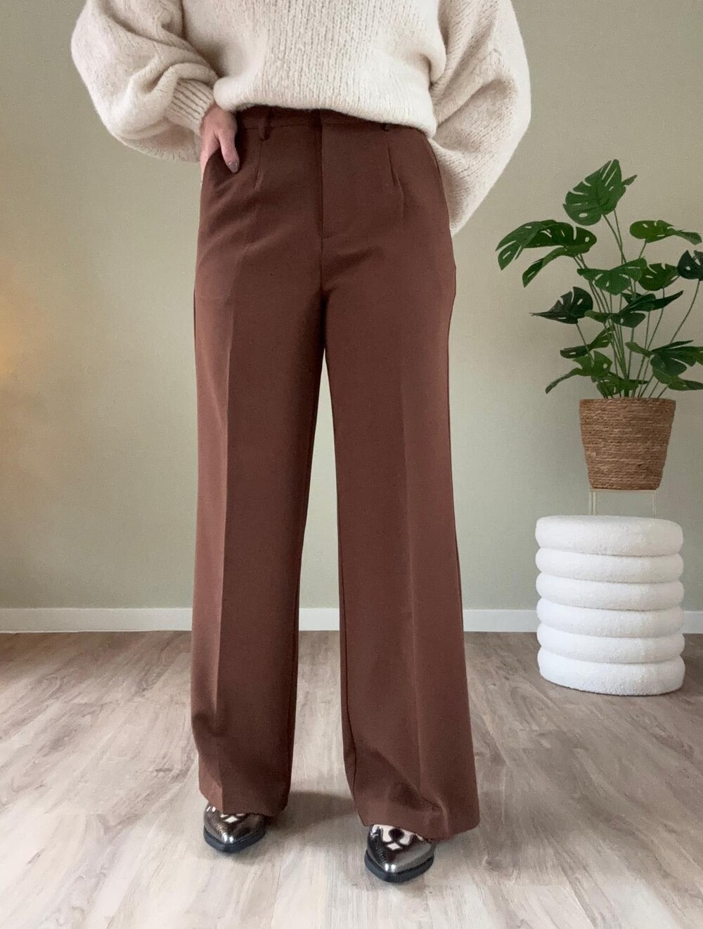Ook komend seizoen blijven de wide-leg pantalons een trend! Gemaakt van een soepele stof waardoor je hem makkelijk aantrekt en het leukste: hij zit heerlijk! Draag hem chique met een blouse of lekker casual met een shirt. De broek is voorzien van rits en knoopsluiting, steekzakken en optische zakken aan de achterkant.