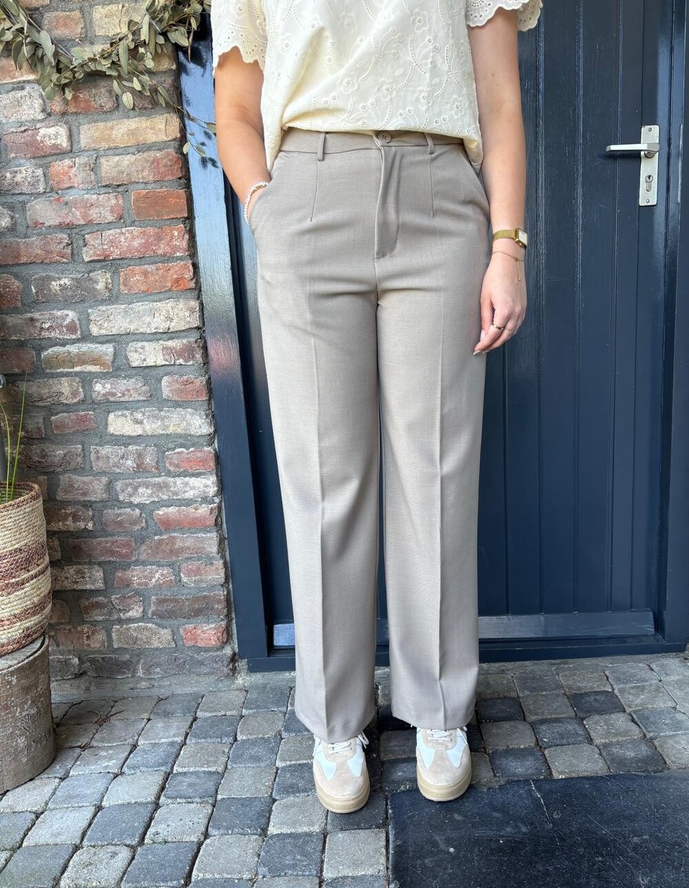 Ook komend seizoen blijven de wide-leg pantalons een trend! Gemaakt van een soepele stof waardoor je hem makkelijk aantrekt en het leukste: hij zit heerlijk! Draag hem chique met een blouse of lekker casual met een shirt. De broek is voorzien van rits en knoopsluiting, steekzakken en optische zakken aan de achterkant.