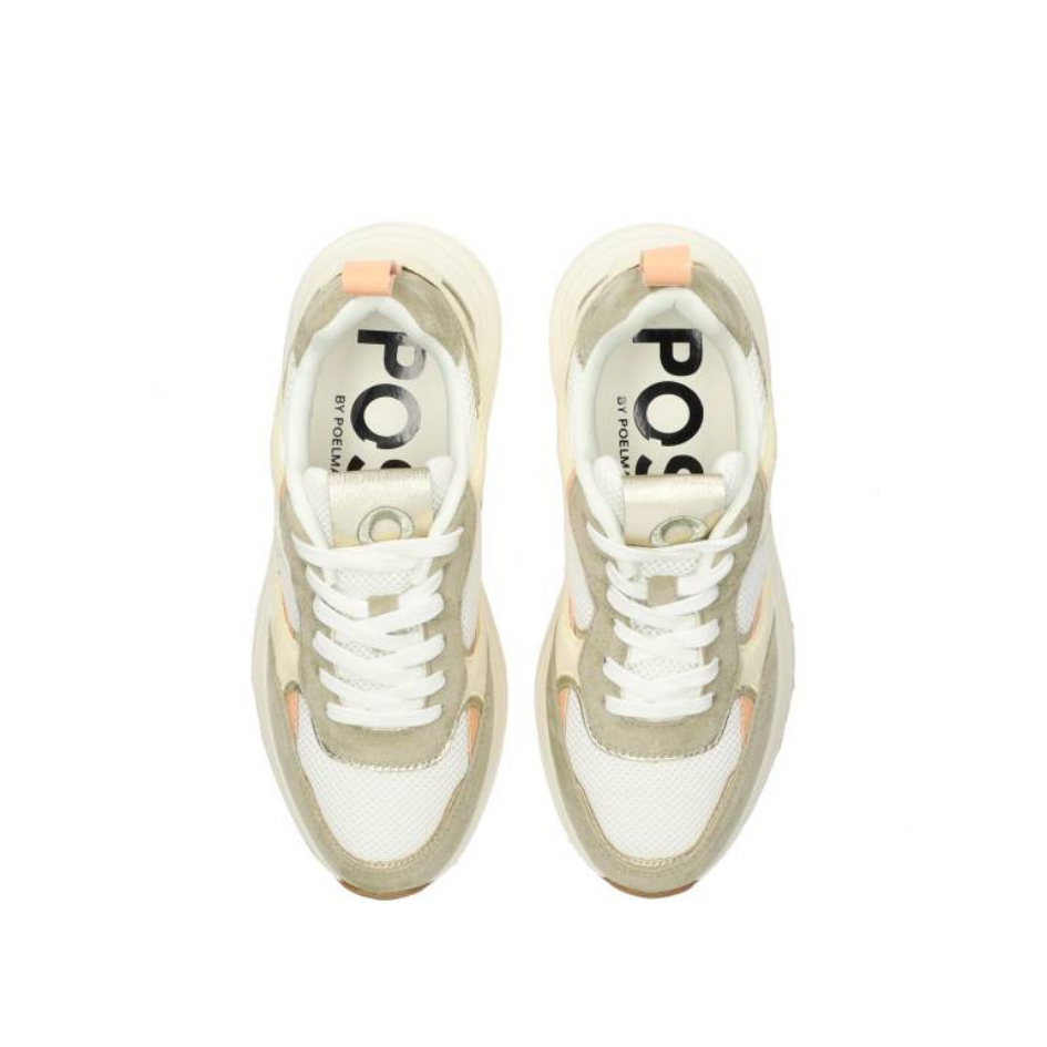 Chunky maar clean. De CARO sneaker van POSH by Poelman combineert frisse neutrale kleuren met een peach-accent voor die subtiele twist. De 4 cm zool geeft je een boost zonder in te leveren op comfort. Het uitneembare voetbed maakt deze sneaker perfect voor all day wear – van koffiedate tot office day.