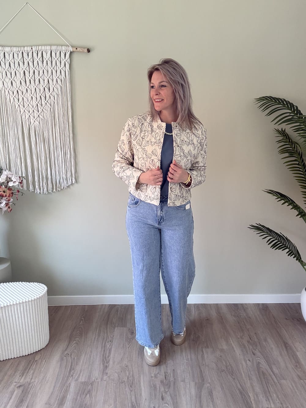 €49,95Oorspronkelijke prijs was: €49,95.€30,00Huidige prijs is: €30,00.Hoe leuk is deze jas/vest met een subtiel bloemen-borduursel en laten we zeggen: de kleur is fantastisch! Het vest is voorzien van steekzakken en sluit met knopen in dezelfde kleur. Het kleine opstaande kraagje maakt hem net even anders!