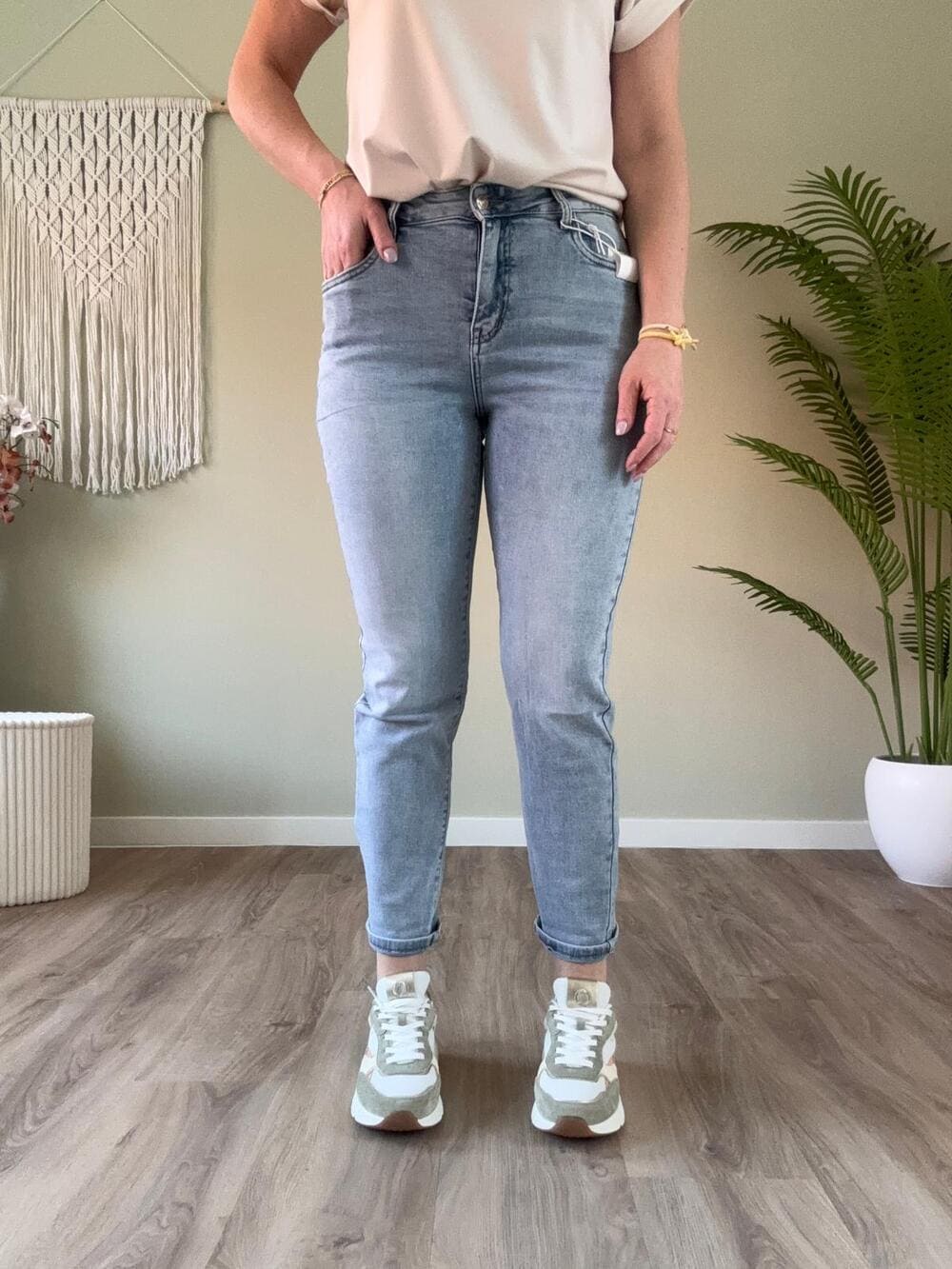 De MOM-jeans met heel veel stretch! Door de hoeveelheid stretch raden wij aan om een maatje kleiner te bestellen dan normaal. De jeans is gemaakt van een heerlijke zachte stof waardoor hij prettig draagt.