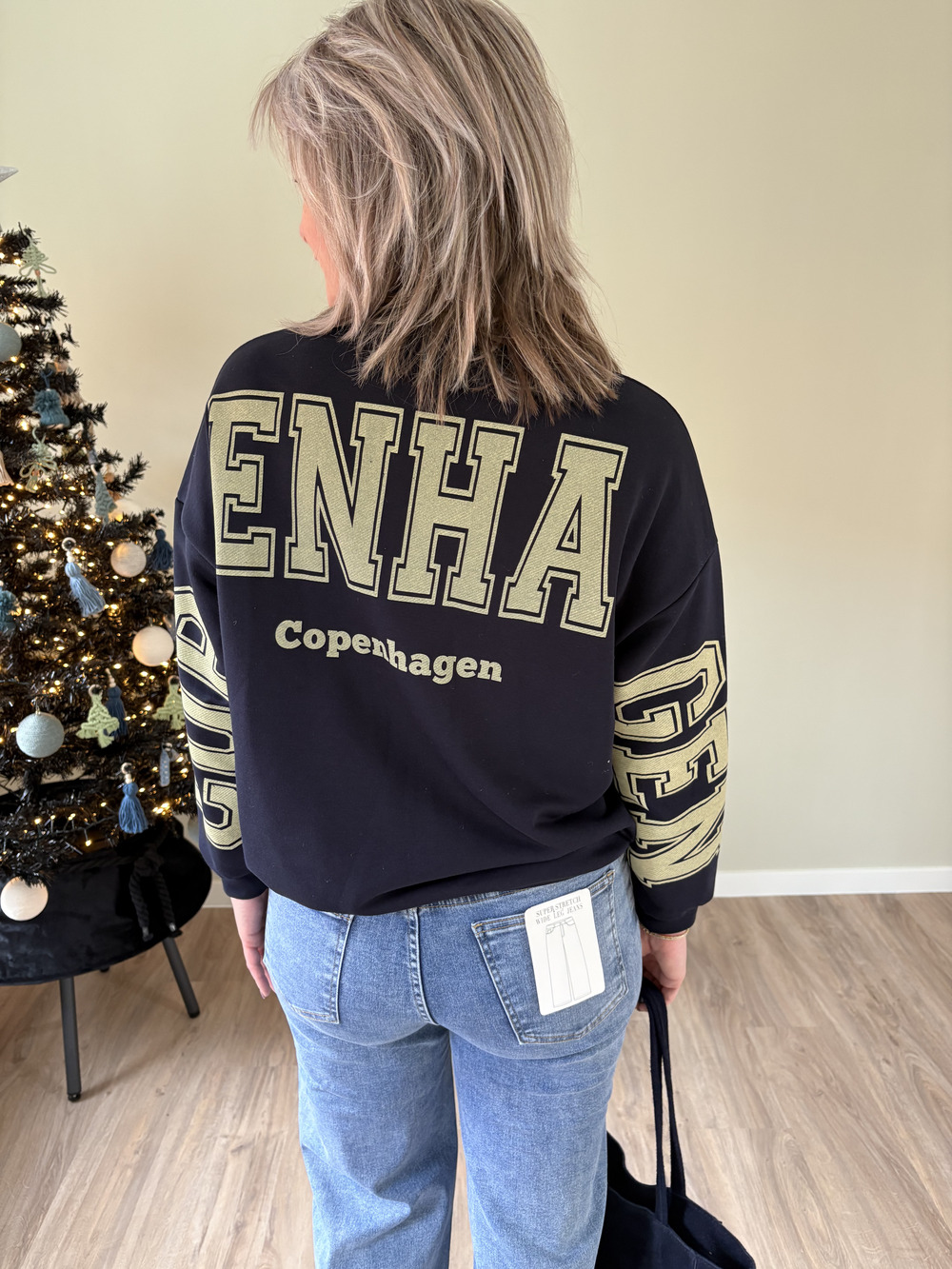 Comfortabele sweater met oversized pasvorm en lookje. Heerlijk om mee op pad te gaan of lekker thuis mee op de bank te hangen.