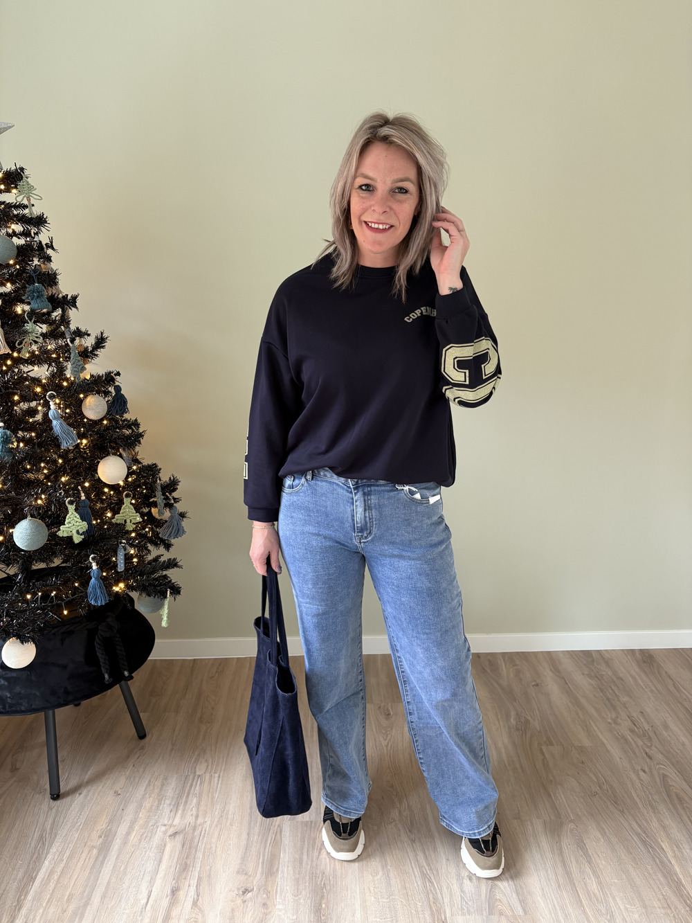 €44,95Oorspronkelijke prijs was: €44,95.€22,50Huidige prijs is: €22,50.Comfortabele sweater met oversized pasvorm en lookje. Heerlijk om mee op pad te gaan of lekker thuis mee op de bank te hangen. Tip: draag de mouwtjes 7/8 voor een sportief lookje. Duw een puntje van de sweater een klein beetje in je favoriete jeans, pantalon of short en jij bent ready to go!