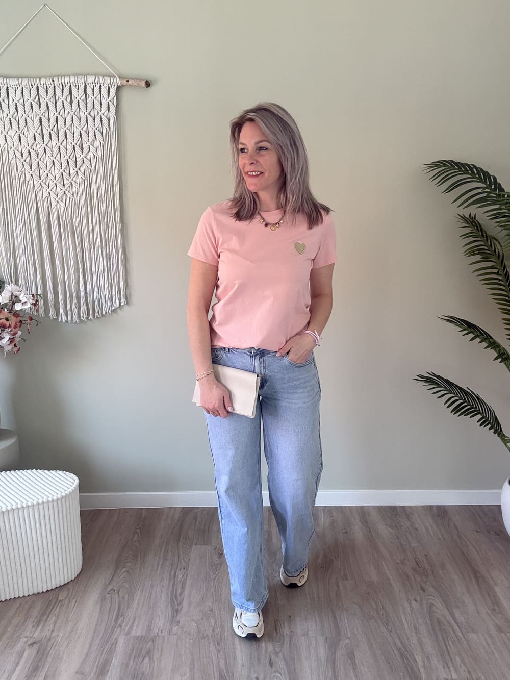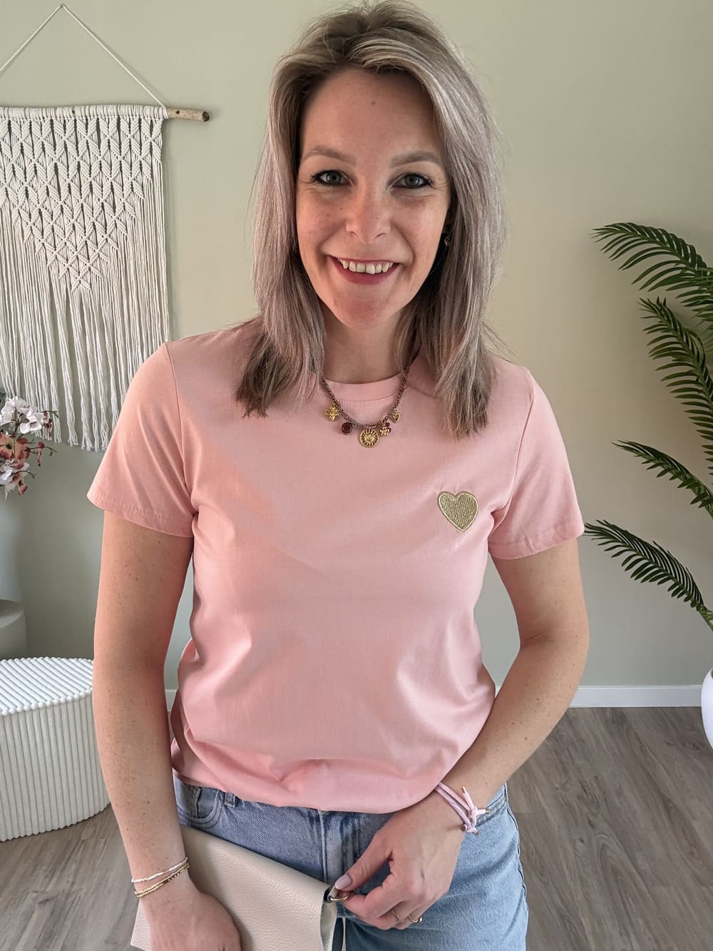 Onze hartjes-shirts zijn ieder jaar wel weer favoriet. Het perfecte basic-shirtje met een klein detail. Verkrijgbaar in de maatjes SM en ML.