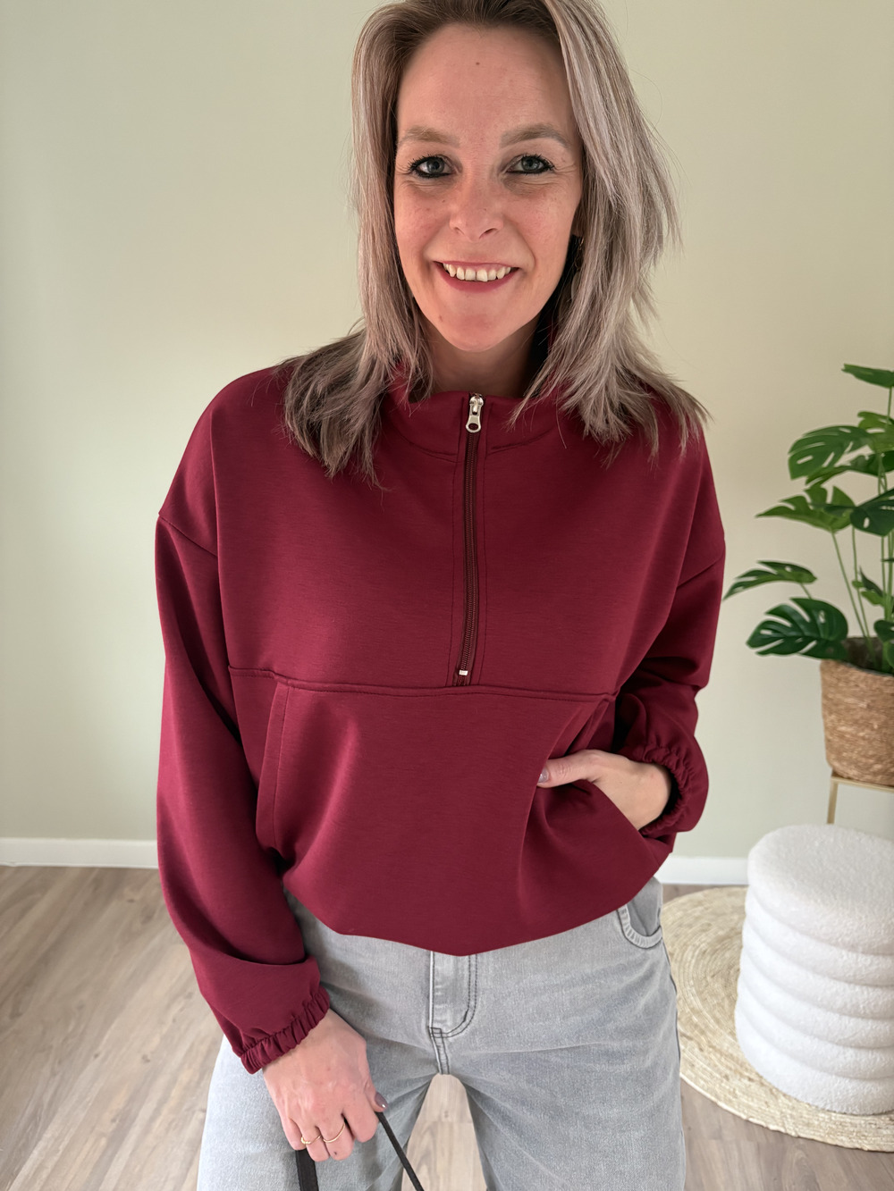 Trui met rits bordeaux