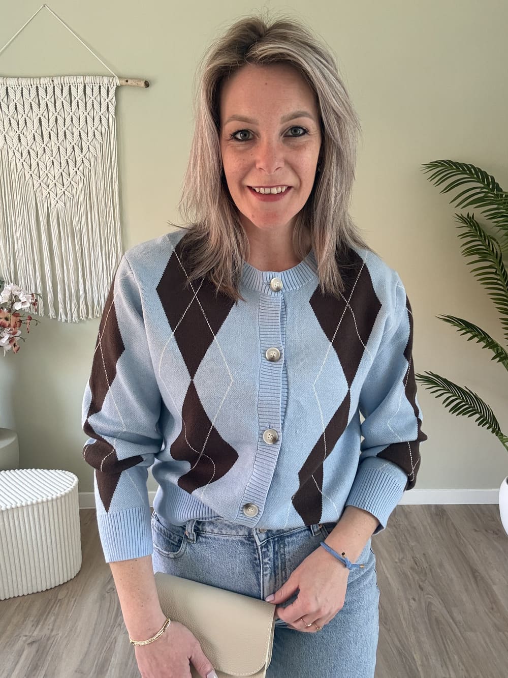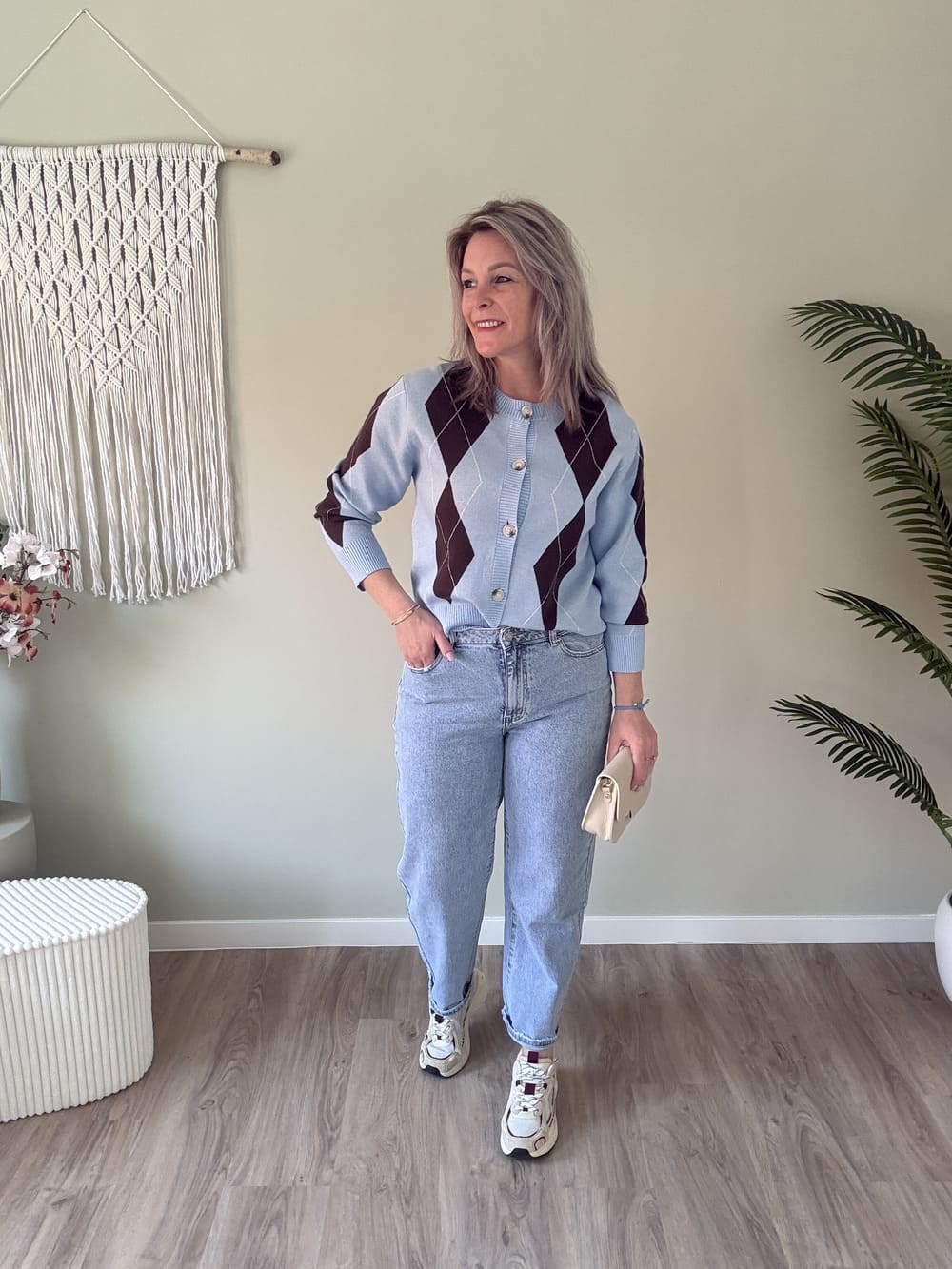 Een trui of toch een vest? Dit sweater-vest kan op beiden manieren gedragen worden. Draag hem als trui door alle knoopjes dicht te laten, of draag hem als vest over je favoriete top. Ruitjes zijn komend seizoen helemaal hip, dus met dit item ben je helemaal trendy.