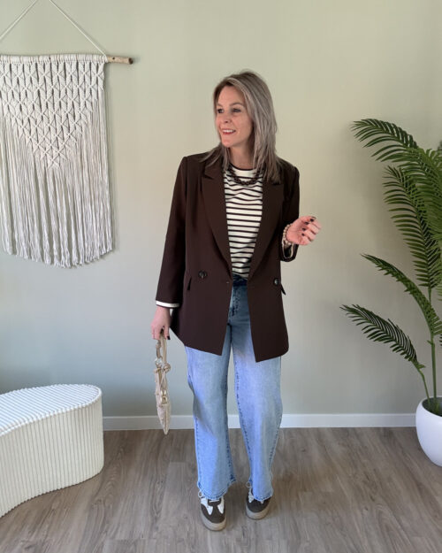 €49,95Met deze fijne blazer geef je elke outfit een classy, casual maar ook sportieve uitstraling. Deze blazer heeft een tijdloos design en mooie oversized pasvorm. Verkrijgbaar in de maten S t/m L, Veronique draagt een M.
