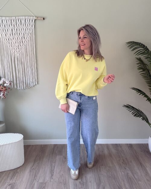 €44,95Comfortabele sweater met oversized pasvorm en lookje. Heerlijk om mee op pad te gaan of lekker thuis mee op de bank te hangen. Deze sweater is voorzien van zachte fleece-voering aan de binnenzijde.